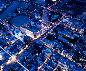 200m以上上空でのヘリコプター撮影(航空法により都市部では1000フィート300m以上)。ヘリコプター空撮は、ホバリング(空中静止)を行えるため、夜景撮影なども可能です。納期に余裕のある場合は、複数の撮影を1フライトで行う合同撮影も可能です。その場合は、撮影飛行料金をお安くお求め頂けます。